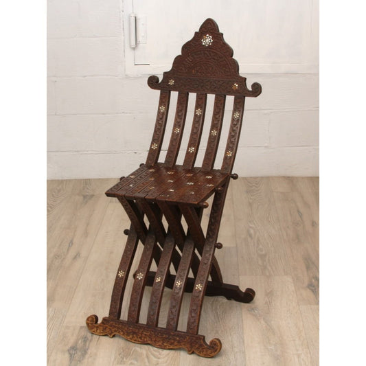 Antique Syrian Moorish Mother of Pearl Inlaid Folding Chair 19thC