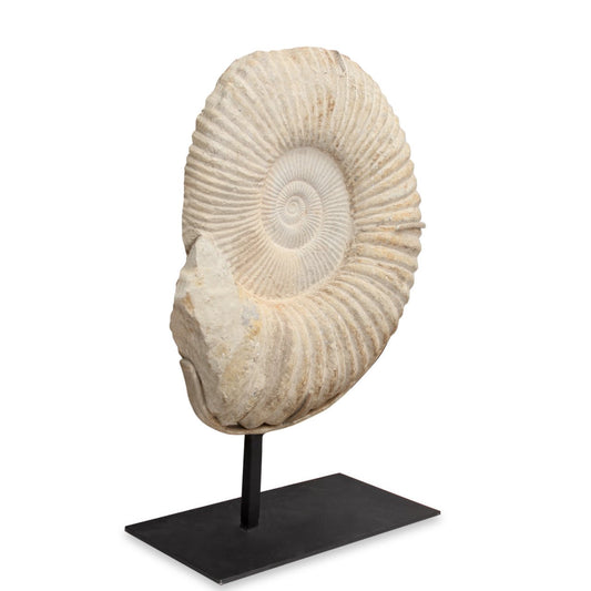 Large Cretaceous Prehistoric Fossilized Ammonite on Black Metal