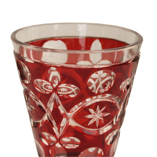 BOHEMIAN RUBY CUT CLEAR GLASS VASE, Pair