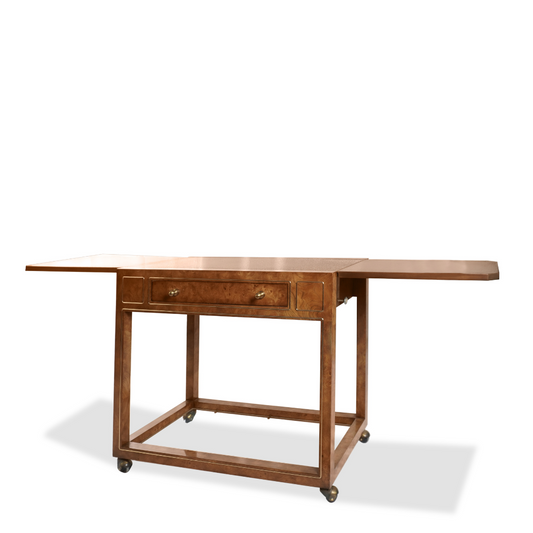 Mastercraft Drop Leaf Burl Wood Rolling Serving Cart Bar with Textured Brass Top