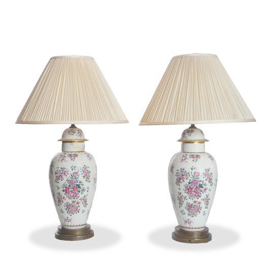 Antique French Edme Samson Armorial Pot w Lid Lamps, Pair of