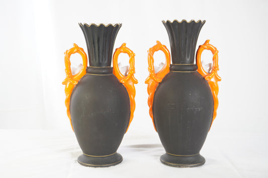 Vintage Continental Hand Painted Majolica Vases, Pair of