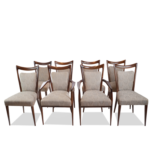 Melchiorre Bega and Mario Gottardi Walnut Italian Dining Chairs, Set of 8 with 2 Arm Chairs