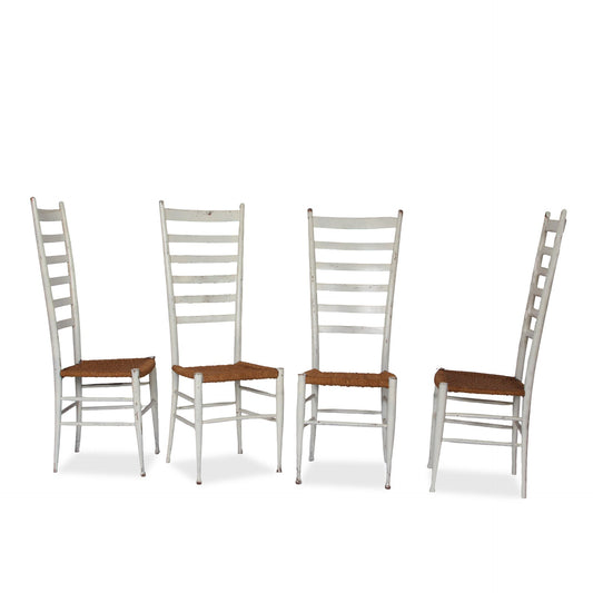 Vintage Italian Gio Ponti Style Ladderback Chairs, Set of 4