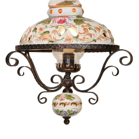 Vintage Italian Wrought Iron & Ceramic Pottery Pendant Light