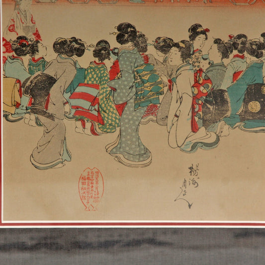 Antique Kuniyoshi Japanese Woodblock Print Diptych
