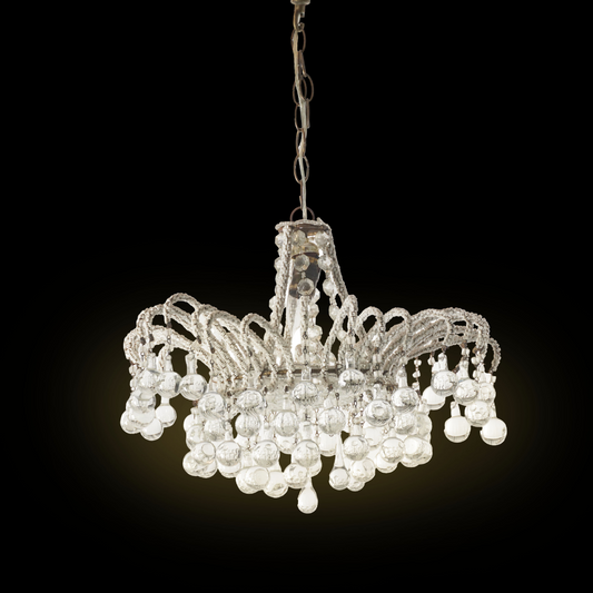 Antique Italian Micro Beaded and Glass Drops Chandelier, Circa 1920s