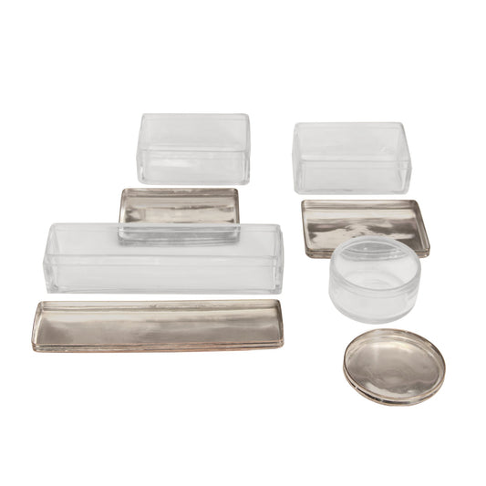 Antique Cut Glass Cologne Bottle Silver Cap, Set of 4