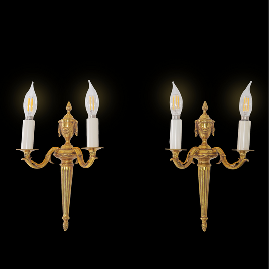 Luminaire d'Art French Empire Louis XVI Style Double Arm Cast Brass Sconces, Pair of