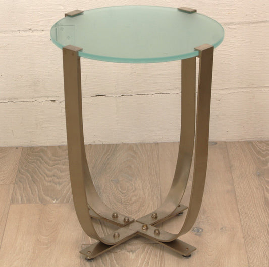 Antique Wolf Hoffmann Art Deco Side Table with Frosted Glass Top