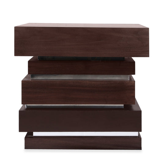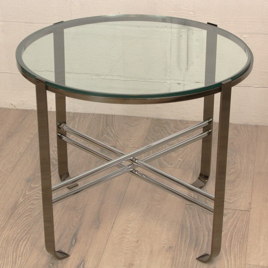 Contemporary Drum Occasional End Table with Tinted Glass Top