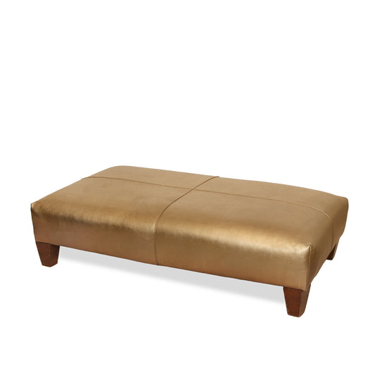Custom Modern NY Gold Leather Cocktail Ottoman with Tapered Block Legs