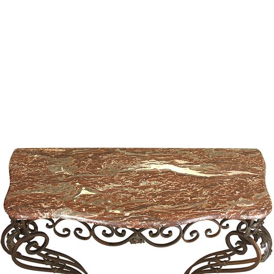 Vintage French Art Deco Wrought Iron Console with Marble Top
