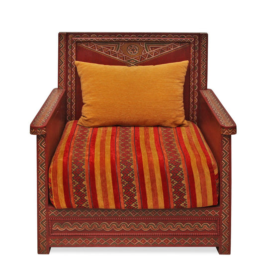Pair of Vintage Moroccan Armchairs with Handpainted Wood Marquetry