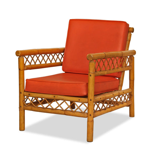 Pair of Vintage Rattan & Bamboo Campaign Style Lounge Chairs with Footstool