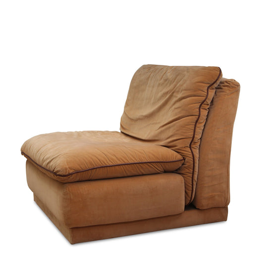 Vintage Roche Bobois Modular Slipper Chair with Velvet Upholstery and Leather Piping