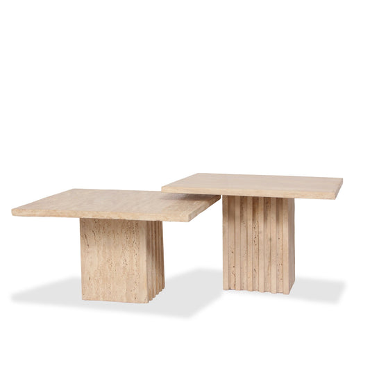 CB2 Carve 2-Piece Travertine Cocktail Table Set